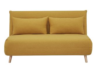 Диван розкладний. Матеріал: тканина, колір: каррі (гірчичний) / дерево, колір: бук. Висота ніжок: 14 см.