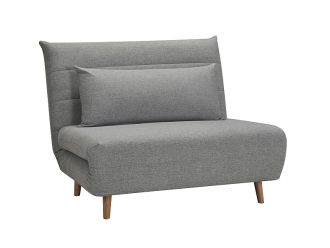 Диван розкладний. Матеріал: тканина, колір - сірий / дерево, колір - бук. Висота ніжок: 14 см.
